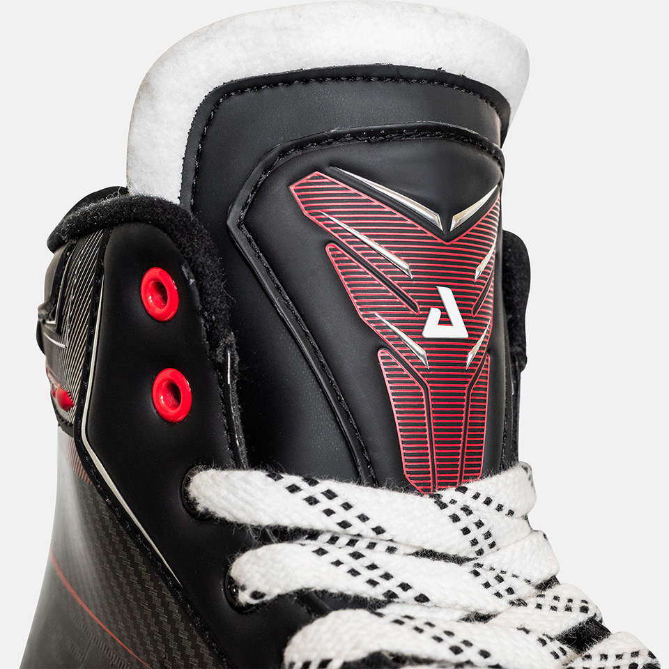 The KOSA 520 is made with a hard, full-molded composite shell that offers a lightweight design. Consequently, this makes it easy to move quickly and efficiently on the ice. Furthermore, the reinforced ankle and heel areas provide excellent support and stability, allowing you to make quick turns and stops with ease. To achieve the most comfortable feel for your foot, the skate is equipped with a microfiber interior. As a result, the foot sits securely and the boot remains gentle on your skin throughout the match.