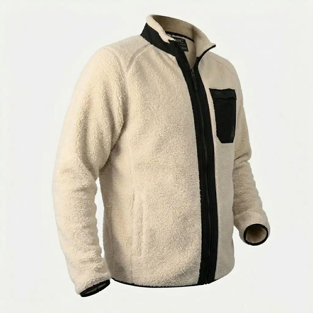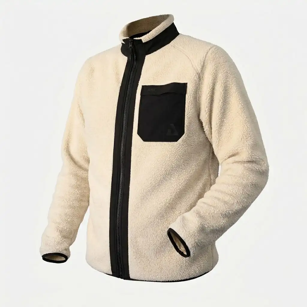 The jacket is crafted from a thick and soft pile fleece. Because it traps air so effectively, it provides great insulation. Additionally, the light color offers a fresh impression. At the same time, the fabric remains durable and functional.