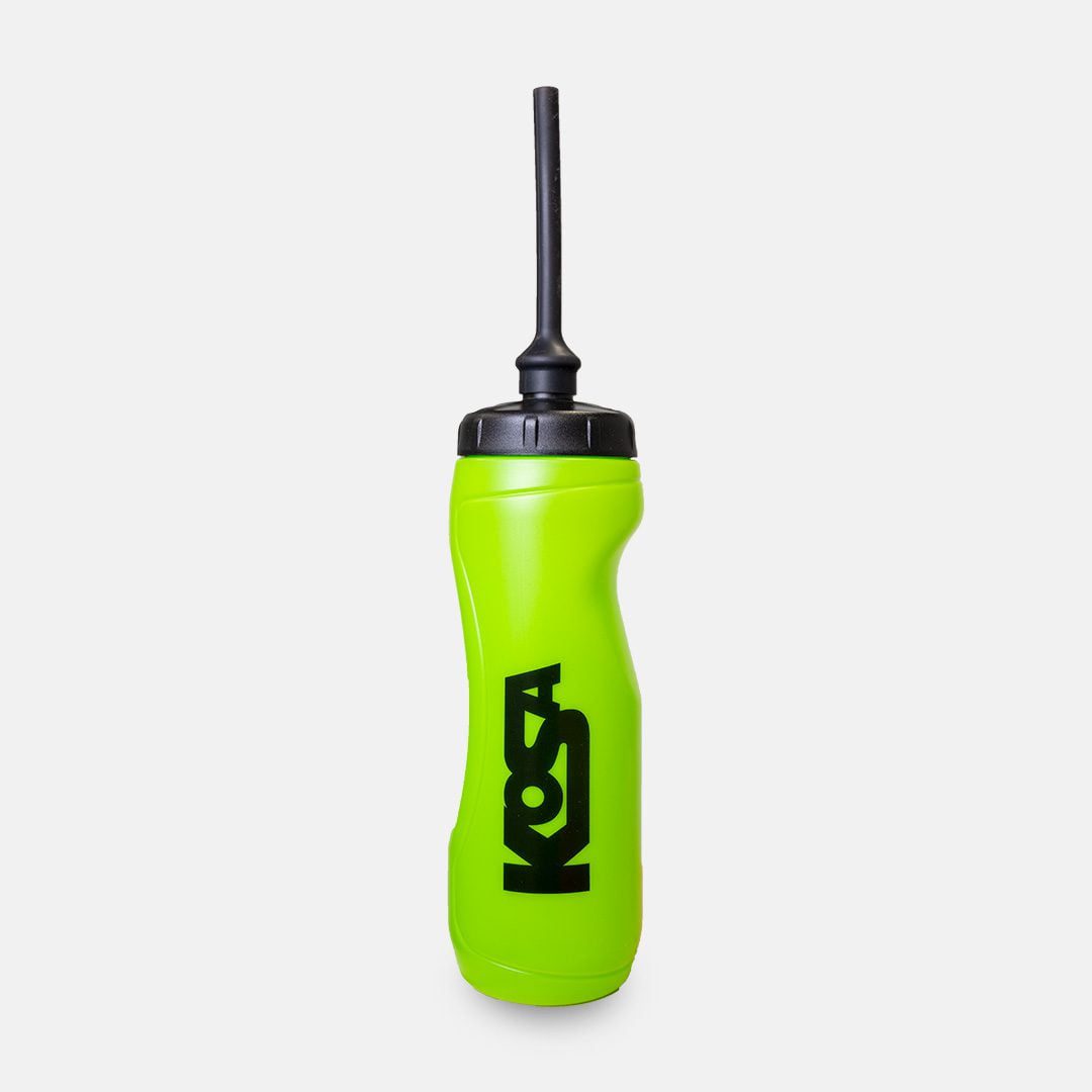 Yellow training bottle of 750 ml with a straw cap that fits perfectly for your bandy practice or bandy match.